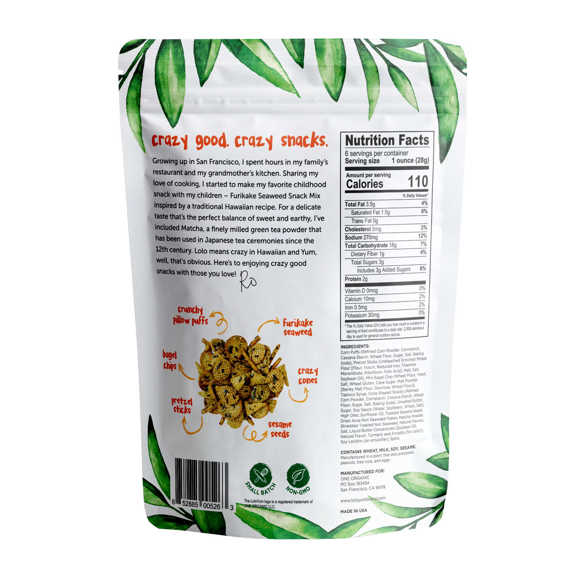 Our variety pack has 24 convenient pre-portioned 1 ounce snack packs of all three flavors of LoloYum furikake snack mix. Ideal for snacking on the go, these are perfect for kids’ lunch boxes, office pantries or snacking anywhere. Each case contains 8 packs of original, 8 packs of matcha and 8 packs of Japanese seven spice flavored snacks.