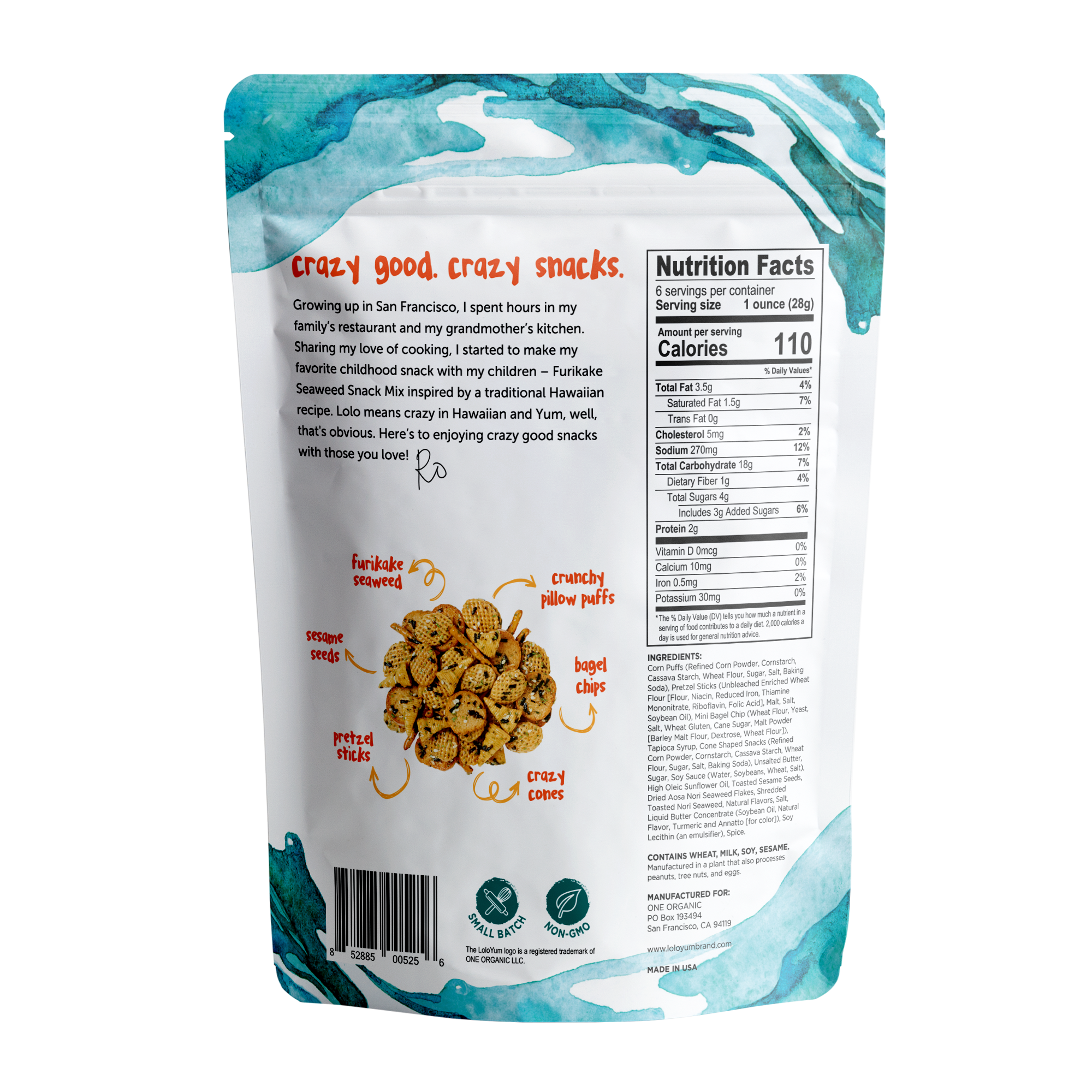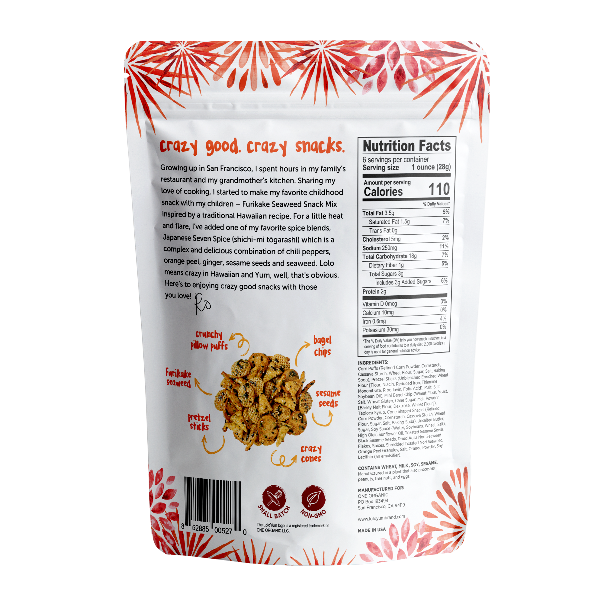 Our Original Furikake Seaweed Snack Mix provides a unique blend of sweet and savory flavor combined with crunchy goodness of different shapes and textures. Seasoned with premium seaweed and yummy seasoning, this snack will leave you wanting more.